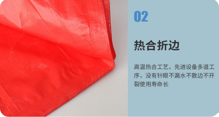 大紅色PE防水篷布熱合折邊:高溫?zé)岷瞎に嚕冗M(jìn)設(shè)備多道工序,沒有針眼不漏水、不散邊、不開裂,使用壽命長(zhǎng)。