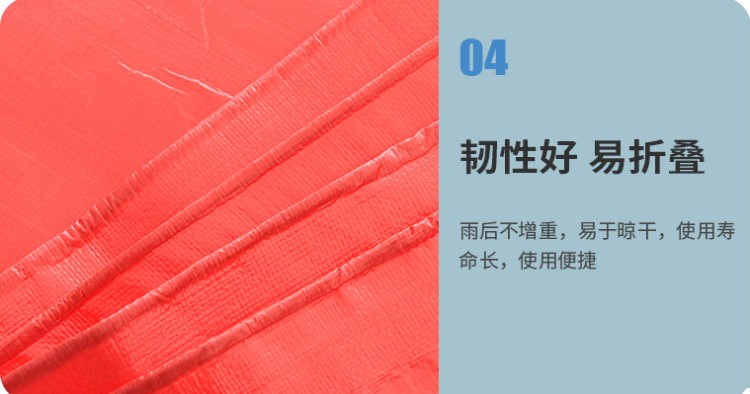大紅色PE防水篷布韌性好易折疊:雨后不增重,易于晾干,使用壽命長(zhǎng),使用便捷。